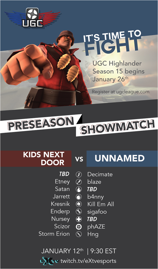 Come join us on Monday January 12th @ 9:30pm EST for an epic preseason showmatch between Kids Next Door and Unnamed! You can catch all of the action live on READ MORE