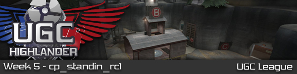 This week's Highlander map is cp_standin_rc1. Home teams will be running the ugc_hl_standard config on their server for this match. The match will play exactly like a 5CP map. READ MORE